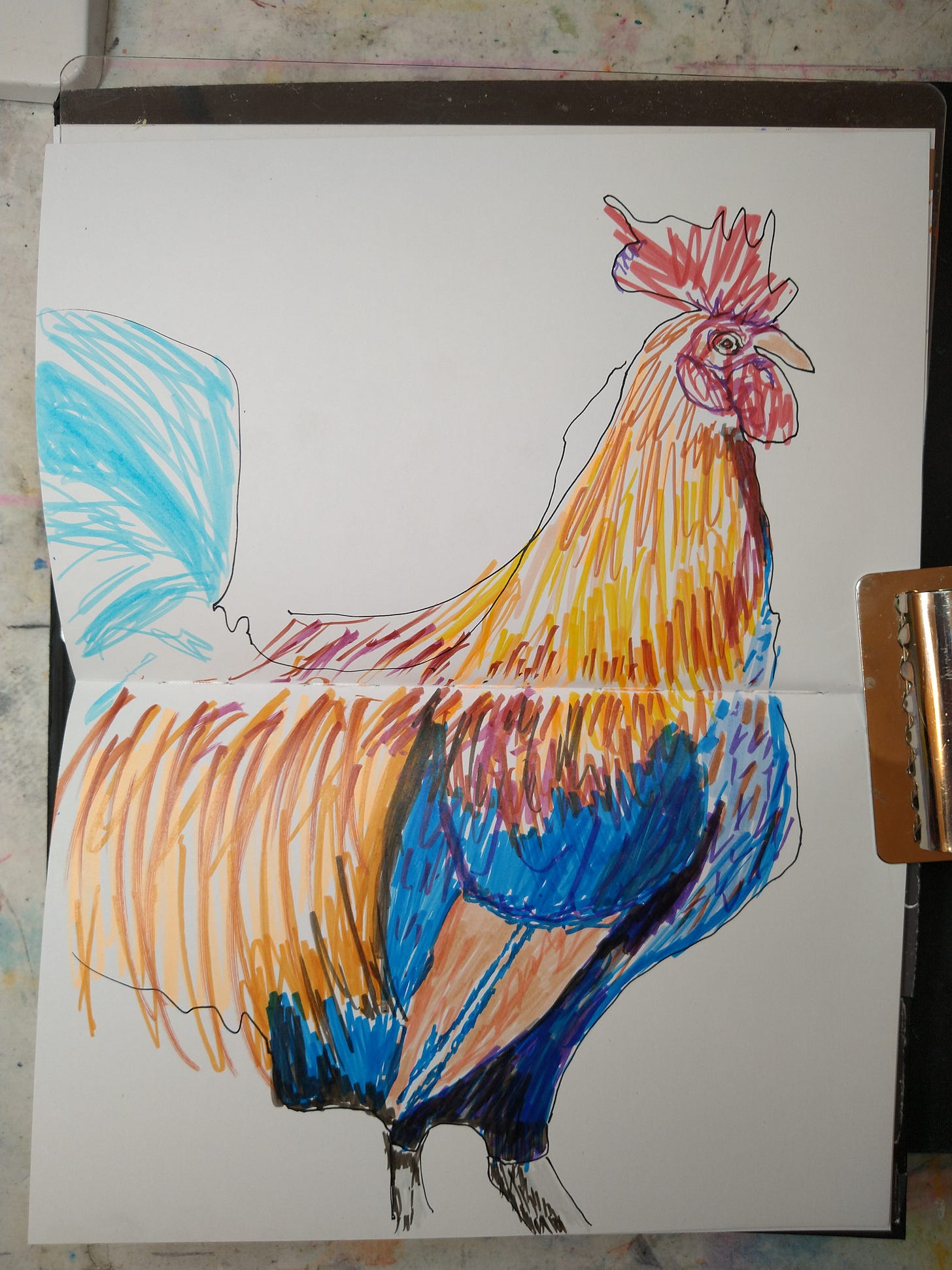 I love how the top of the chicken’s head came out, but the rest of my penwork didn’t do nature’s pretty curvature any justice